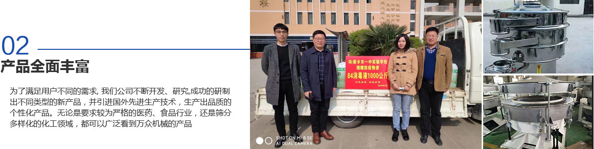 新鄉(xiāng)市萬眾機械設備有限公司是生產(chǎn)振動機械、篩分設備和過濾設備的專業(yè)廠家之一,擁有生產(chǎn)設備、雄厚的技術力量、完善的檢測手段、嚴格的管理體系。是河南省的商標之一,被河南省科學技術廳頒定為高新技術企業(yè),為新鄉(xiāng)市“守合同重信用企業(yè)“。質量信得過產(chǎn)品、質量服務消費者滿意企業(yè)、合格產(chǎn)品等榮譽稱號。擁有自主進出口經(jīng)營權,產(chǎn)品遍布各地,并遠銷北美、西歐及東南亞等地區(qū)。